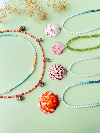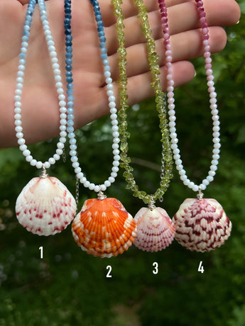 Handpicked, uninhabitable scallop shells from the Florida beaches hanging on the most beautiful beaded necklace meant to compliment the beach babe within you!