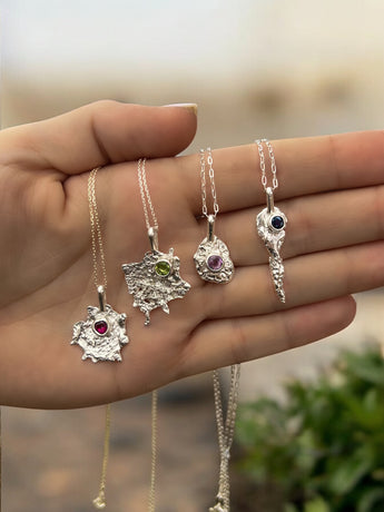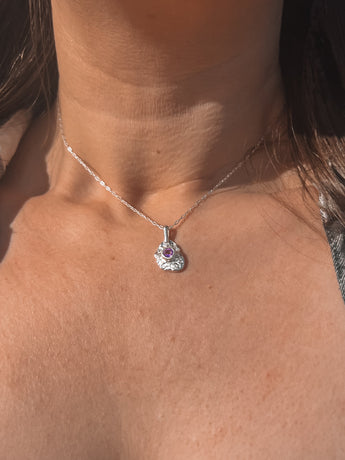 Recycled silver splattered in this organic shape by accident, with a touch of flashy amethyst?! The most stunning piece to compliment YOU!