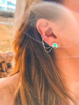 Ear cuff but add some ✨sparkle✨!! Step up your ear game with these cuuuttteeeee ear cuffs that come with two Carico Lake studs, an ear cuff with two chains attached to a jacket. Ear cuff chain can be worn in either front or back of the stud, the stud can be worn with or without the ear cuff!