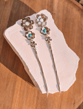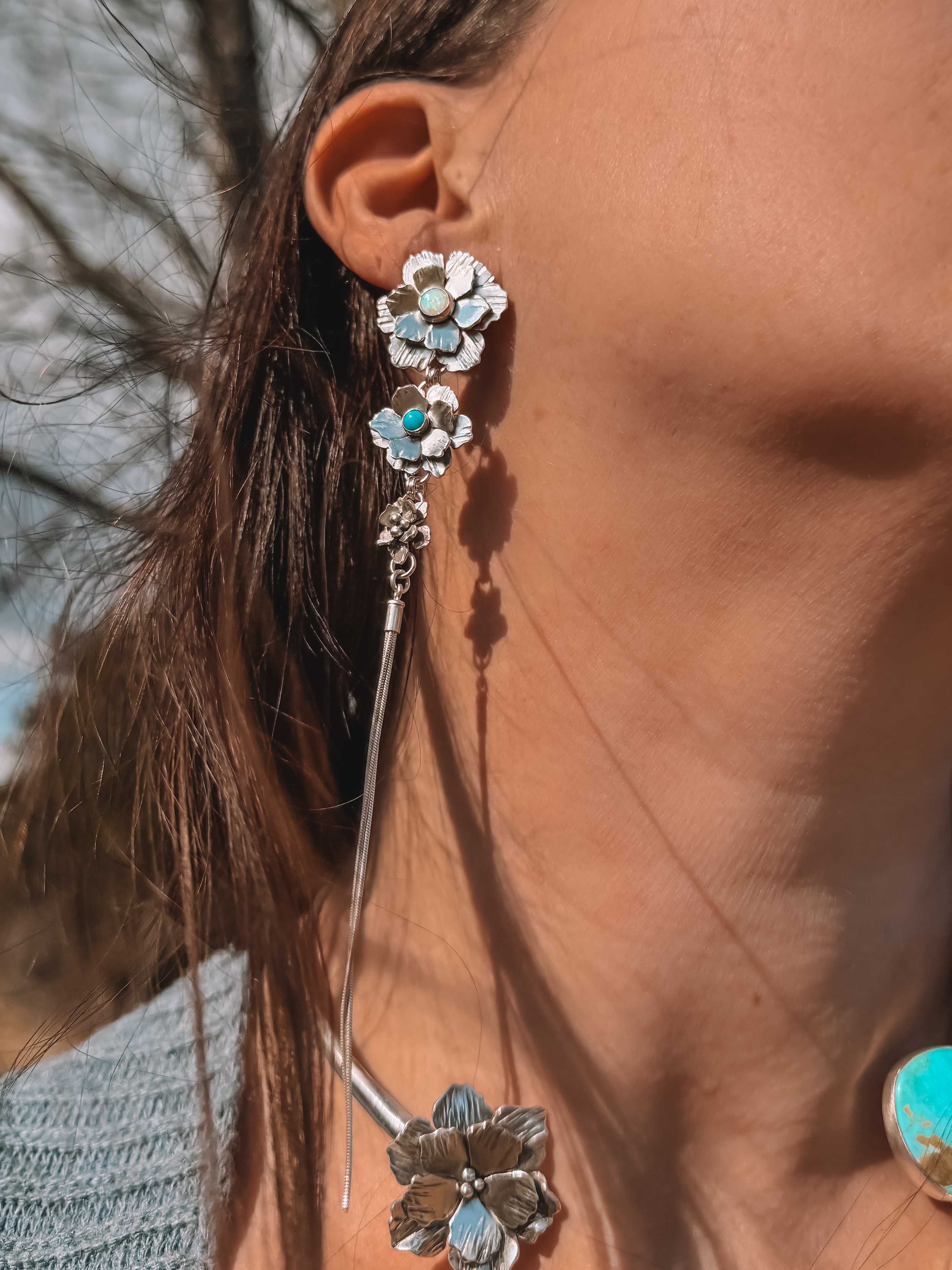 Flowers that last for generations! Hand forged florals with a touch of turquoise and opal to complete the one of a kind piece!