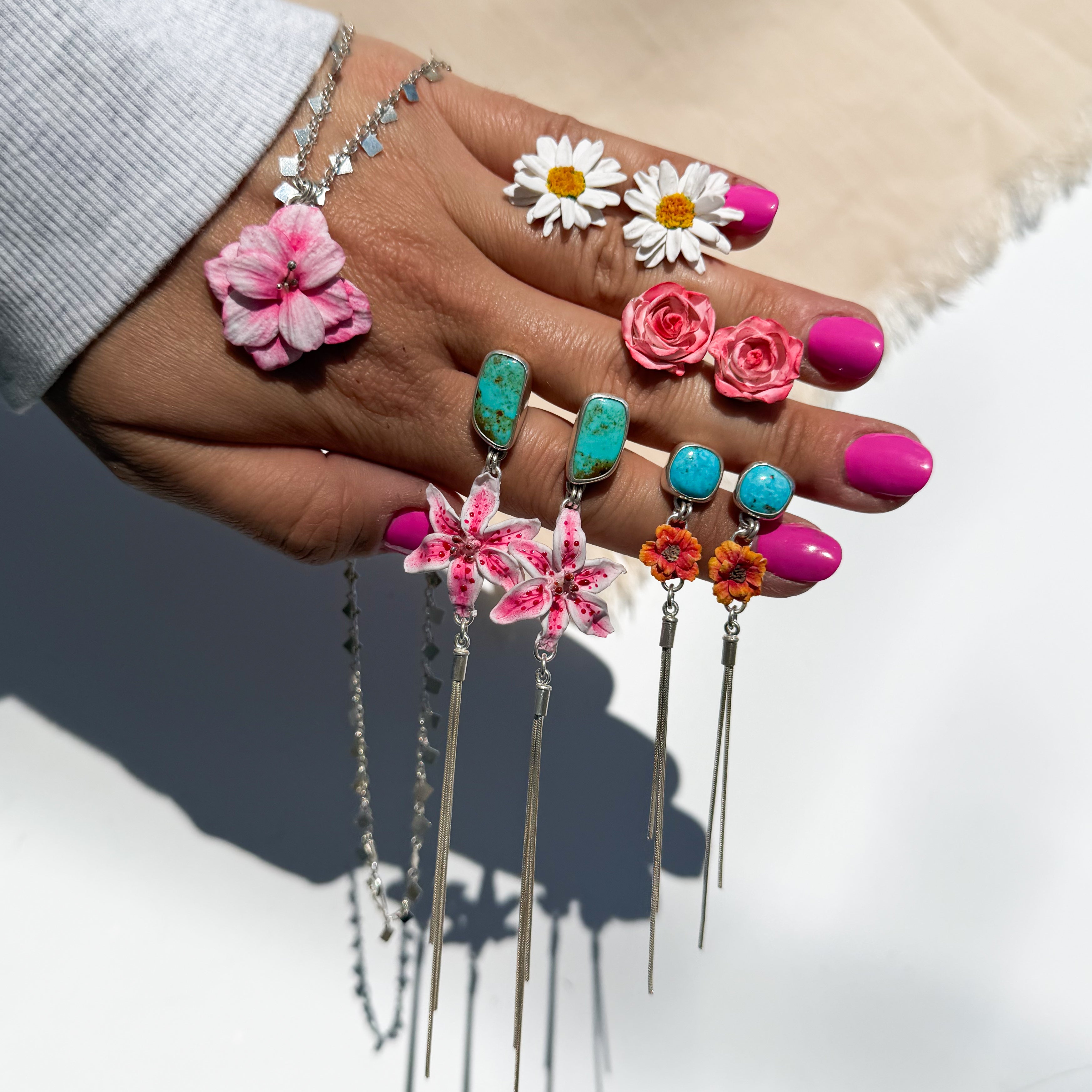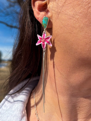 Handmade lilies paired with bright blue & green Royston Turquoise. A pop of bloom below blue skies!