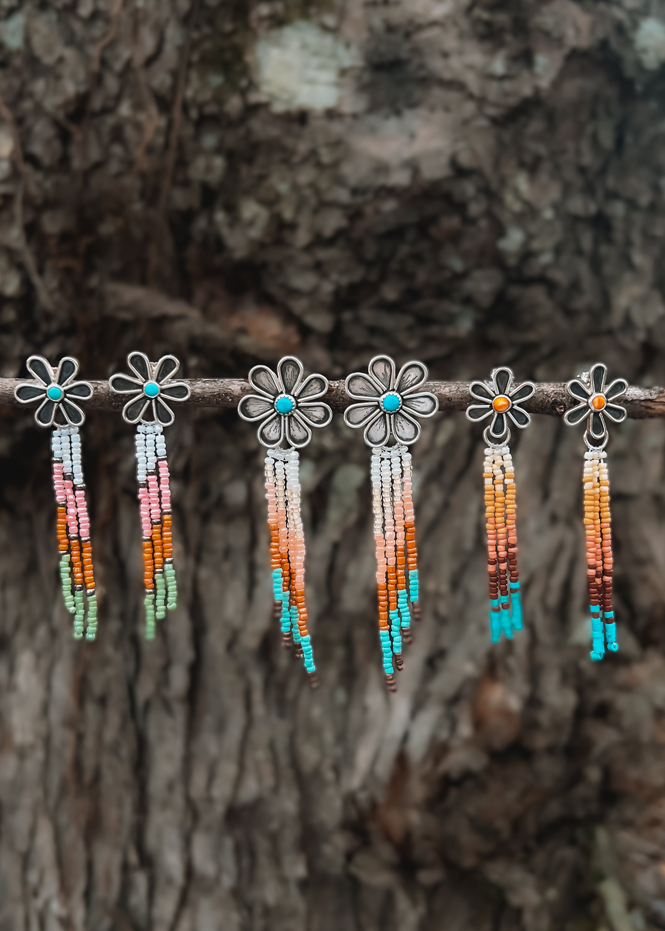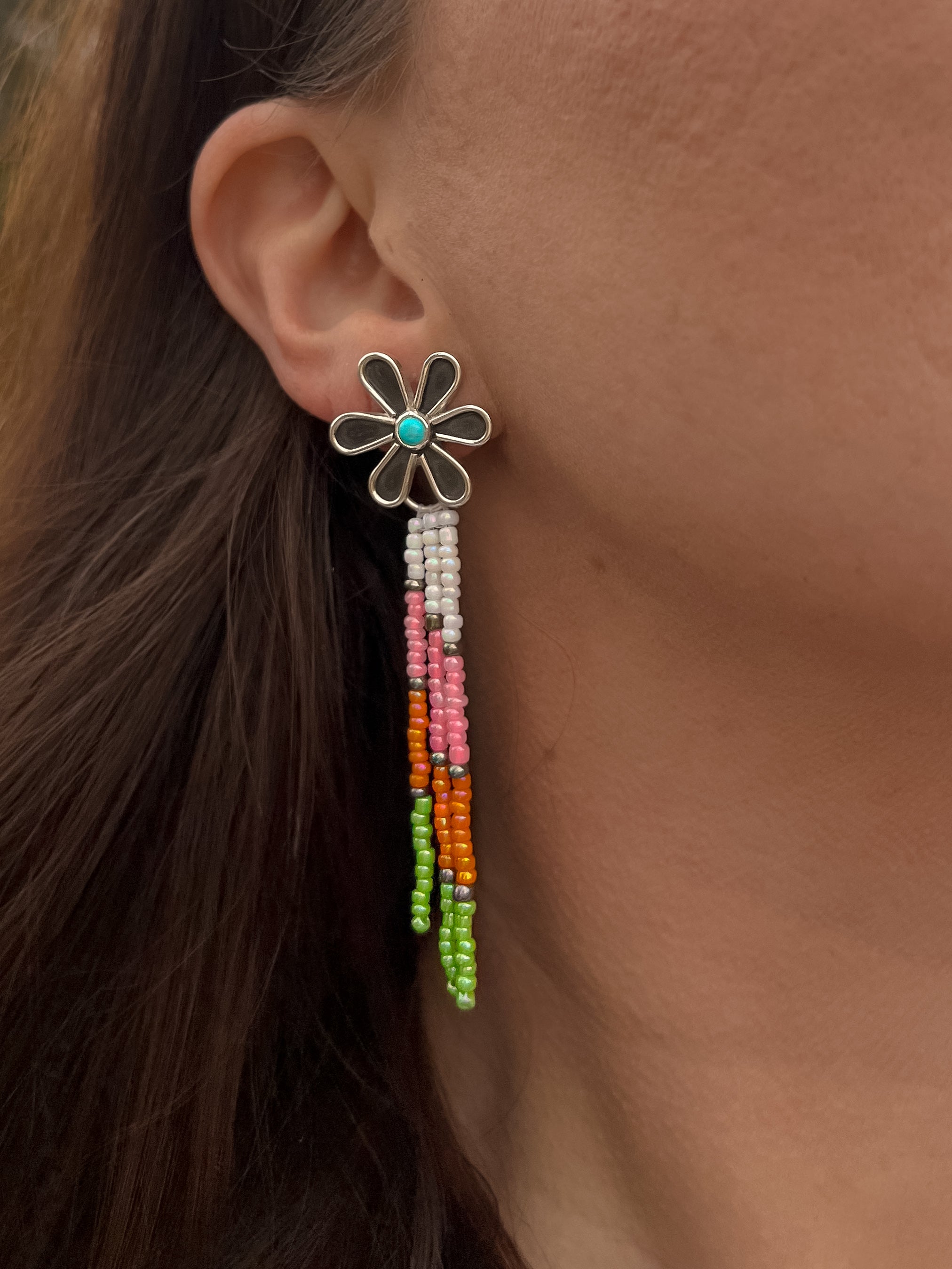 Sleeping Beauty turquoise with a hand forged flower and seed bead accents that flow effortlessly with every step!