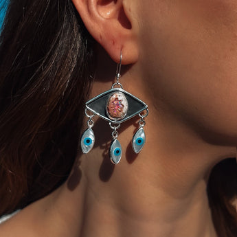A little bit of mystery, a little bit of magic, and a whole lot of adventure! Crafted with shimmering mother of pearl evil eye cuties & a dreamy Cantera Fire Opals. Whether you’re manifesting good vibes or just love a statement earring, these are my new go-to!