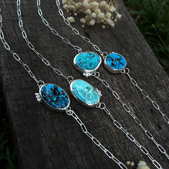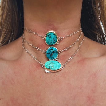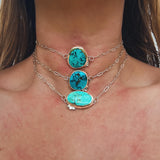 Dainty & sweet. The paperclip chain choker features a Bamboo mountain turquoise stone. A perfect addition to any collection; wear alone or stack with other necklaces!