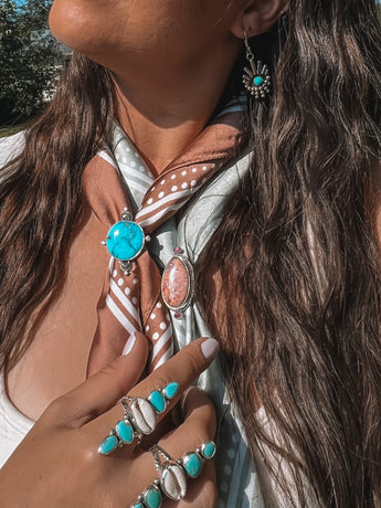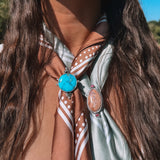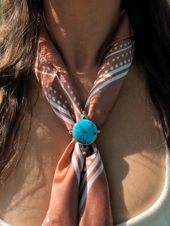 • Scarf is roughly 35” // Can slide onto any scarf making this piece versatile!